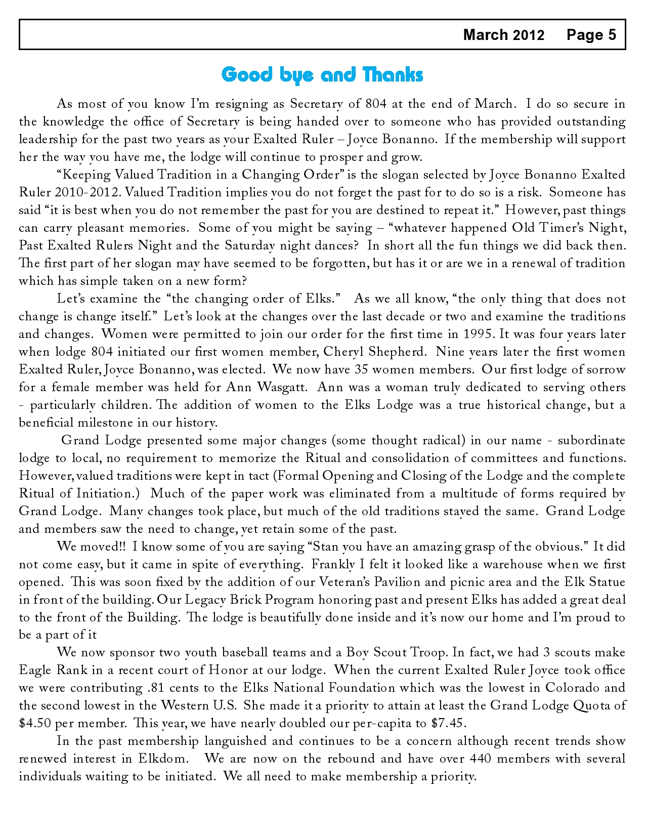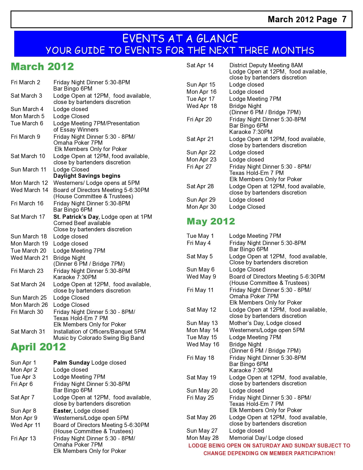 Lodge Newsletter