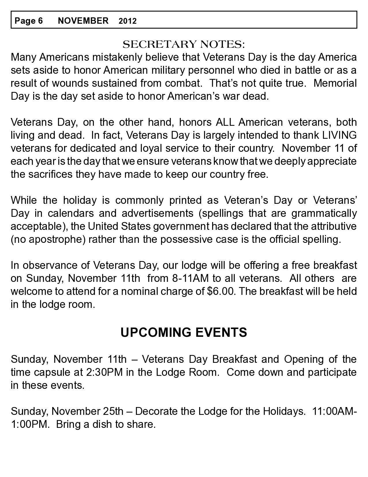 Lodge Newsletter